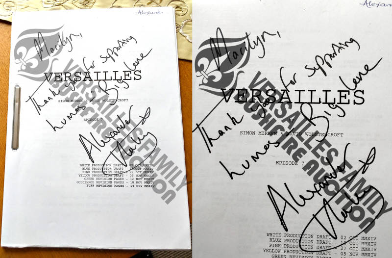 Copy of "Versailles" Script for season 1, episode 7 'Revelations', Autographed by Alexander Vlahos. 50 Pages